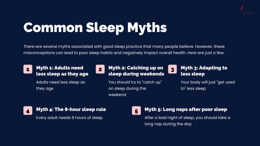 Some of the myths associated with good sleep practice include: